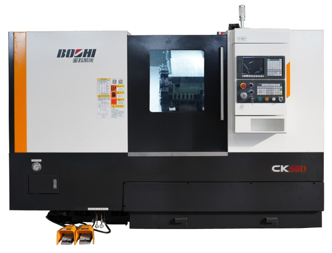 CK40D/CK50D是一款配置國產(chǎn)電主軸的實用型數(shù)控車床,采用高強度鑄鐵鑄造、床身底座整體式結(jié)構(gòu)、傾斜導軌,主軸軸承及進給絲杠專用軸承傳動噪音低;配備國產(chǎn)多工位轉(zhuǎn)塔刀架,就近換刀。機床可配置日本FANUC 0i-TF(5)、西門子828D等數(shù)控系統(tǒng),也可選配國內(nèi)外其它品牌高性價比數(shù)控系統(tǒng)。